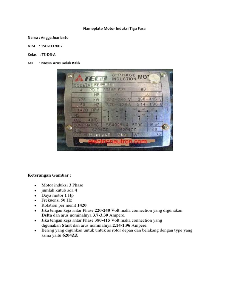 Hubungan Segitiga Bintang Dengan Name Plate Motor 380 660 V Youtube
